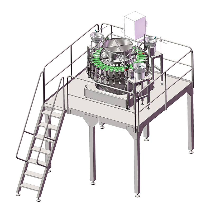 振动给料机、Z型提升机、工作平台、电脑组合秤、分料装置、双联立式包装机