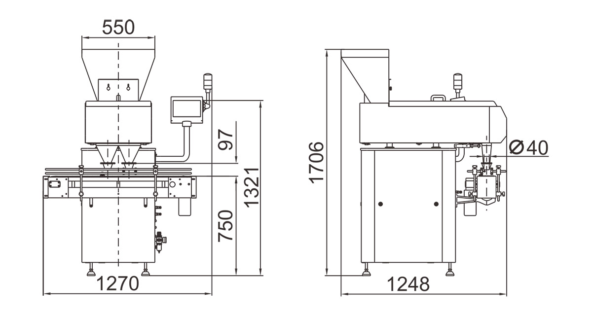 6. 数粒部件整体升降, 可实现瓶高的无极调节, 可调节范围50-250mm。