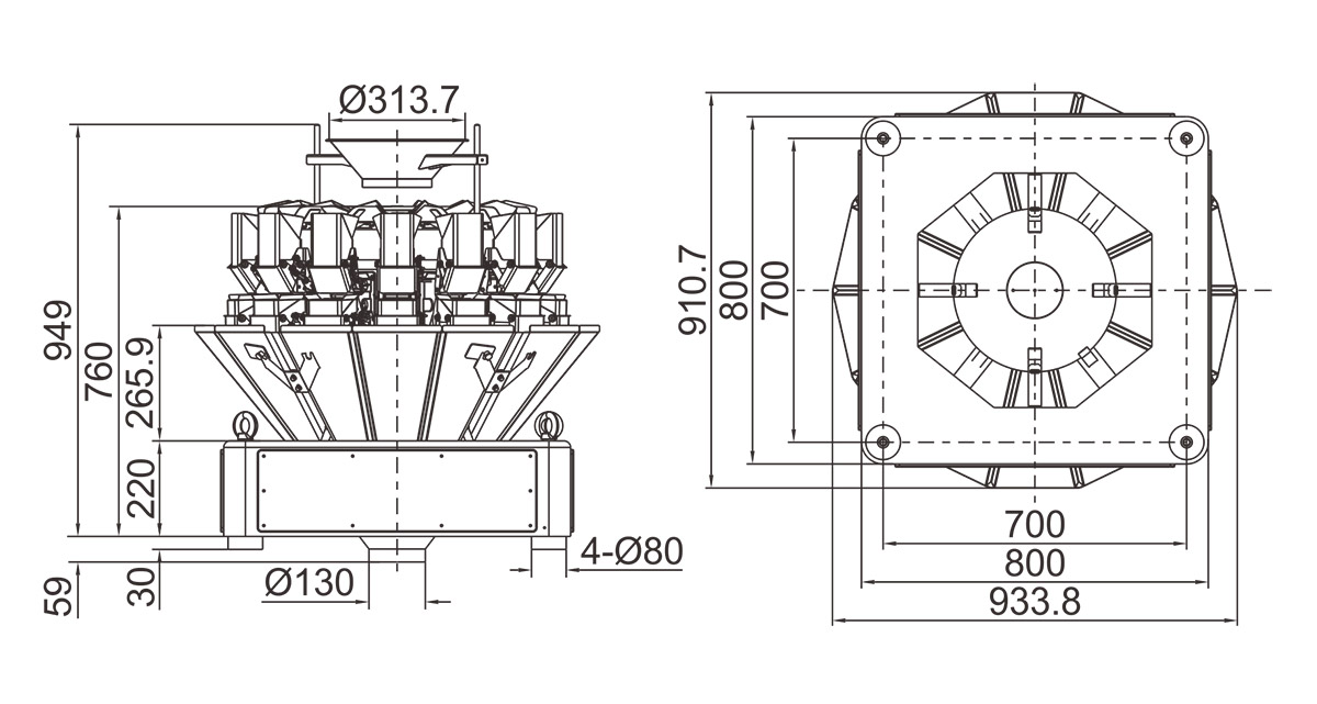 3. 特制V型线振盘,小重量称重设计,保证加料均匀及称重精度。