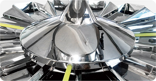 6. 特制双峰式带扫除棒的旋转主振盘,通过正反旋转分配到各线振盘。