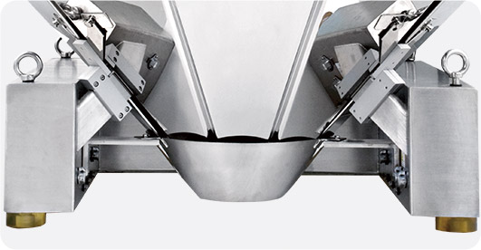 1. 新增多角分料斗,有效将物料分配到各线振盘中。