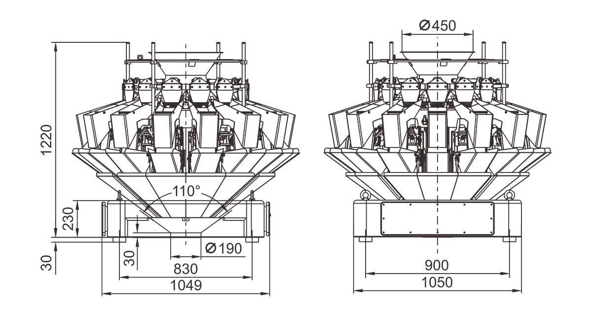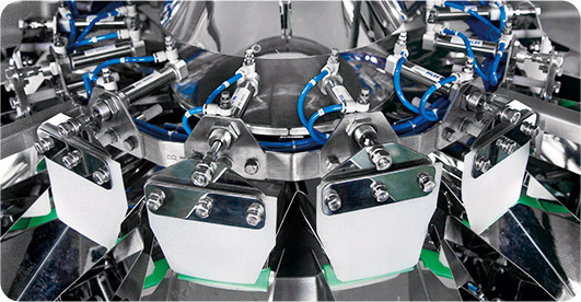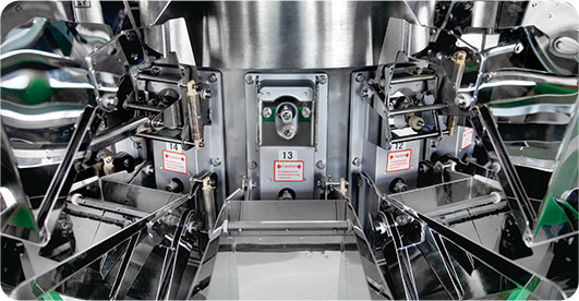 3. 内倾式称量斗,提前缩短下落高度。
