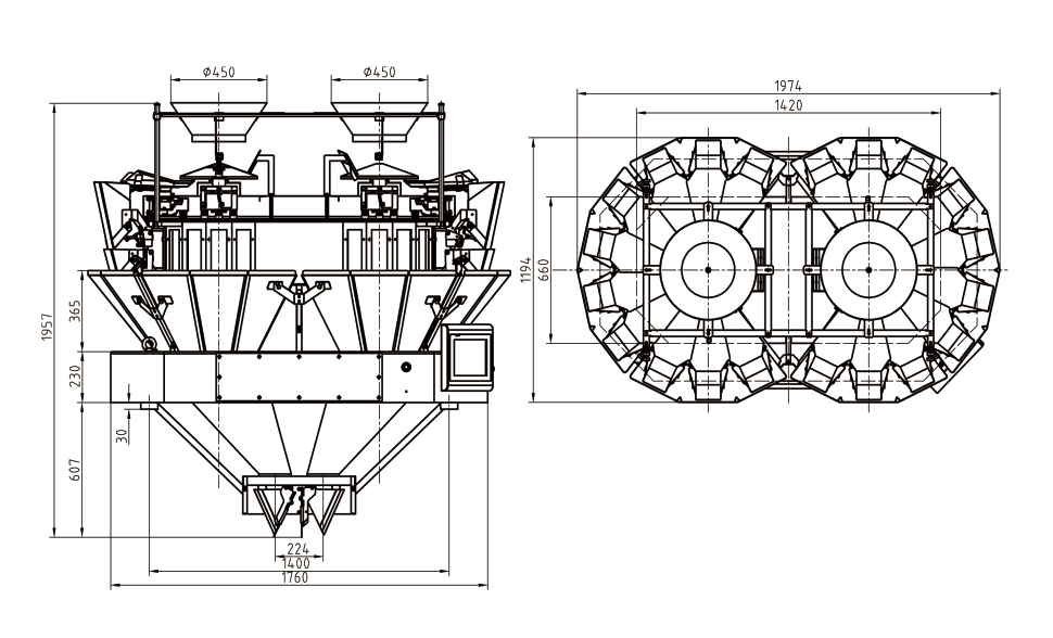 1. 料斗组合数更多,精度更高、数度更快;