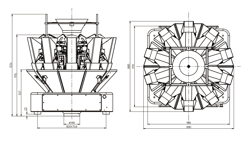 3. 口字型机箱和中座一体化焊接极大的增强了机器的强度,使得料斗的稳定时间更短。